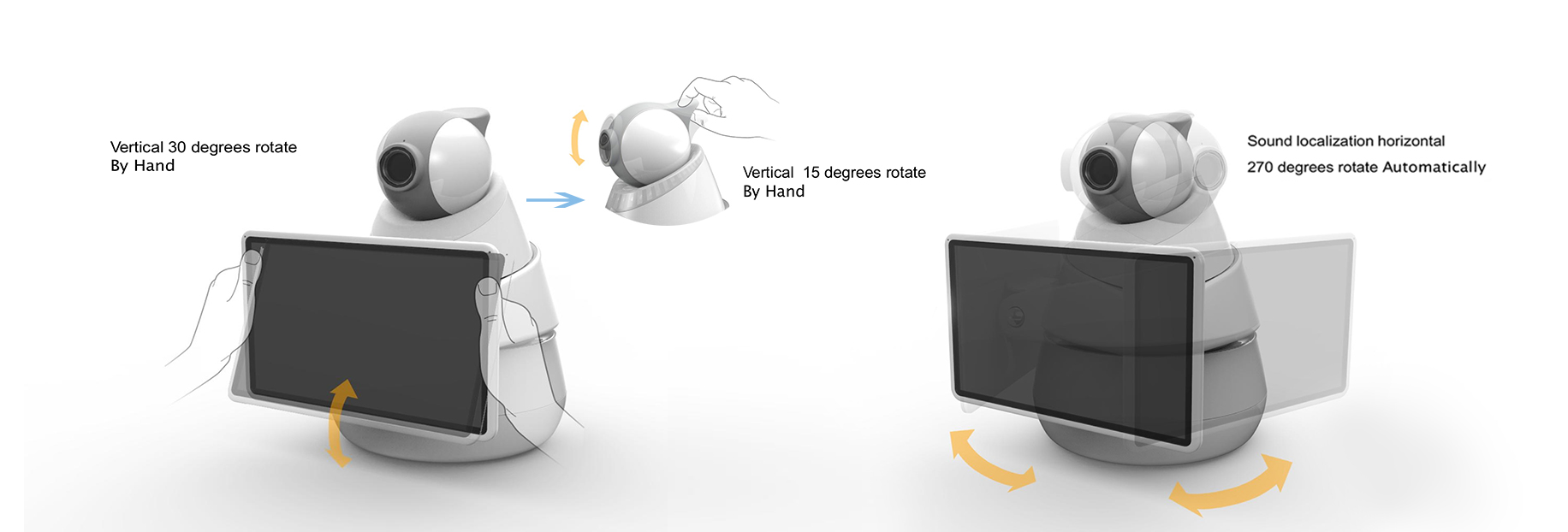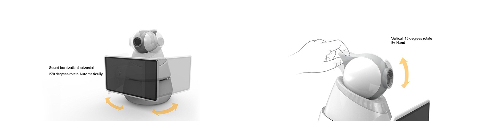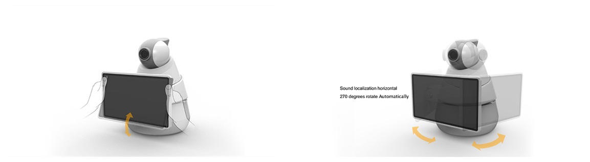 ? Voice control ? Speech source localization ? Video chat ? Face recognition ? Environment monitor ? MiraCast function ? DLNA wireless transmission ? Remote operation ? 0-240 degree flexible rotation
